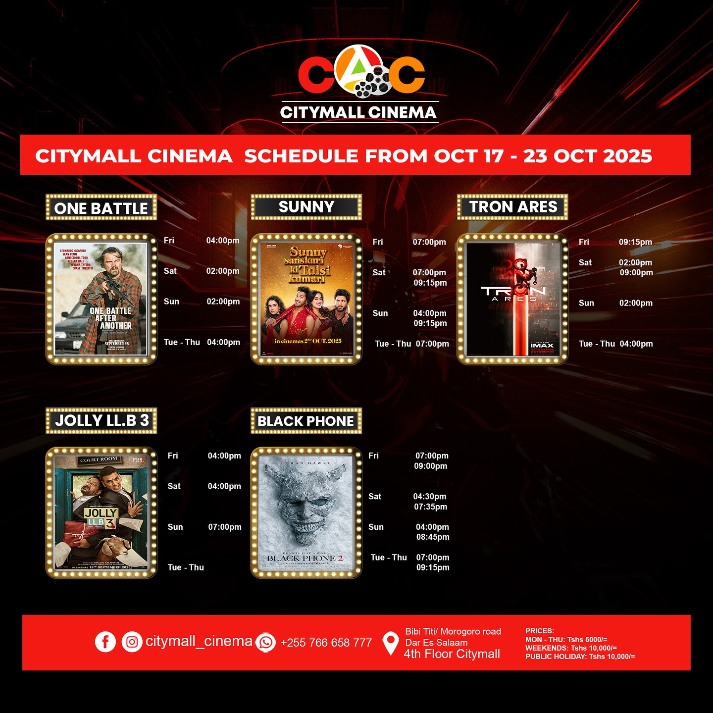 Current Weekly Cinema Schedule for Cinema MaxZ Citymall , Dar es Salaam, Tanzania