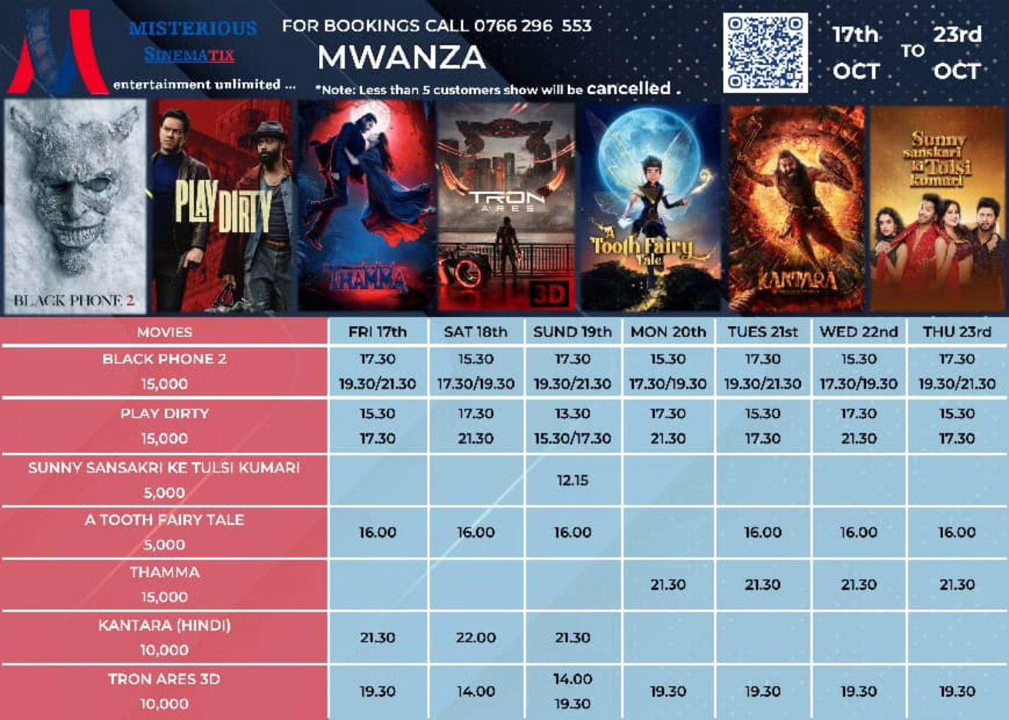 Current Weekly Cinema Schedule for Misterious Sinematix, Mwanza, Tanzania