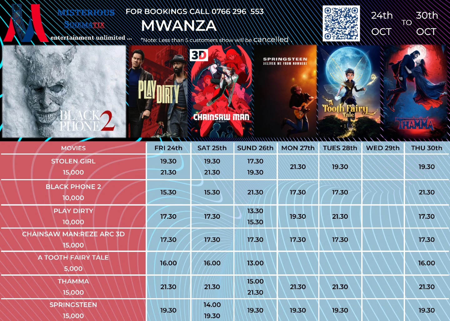 Current Weekly Cinema Schedule for Misterious Sinematix, Mwanza, Tanzania