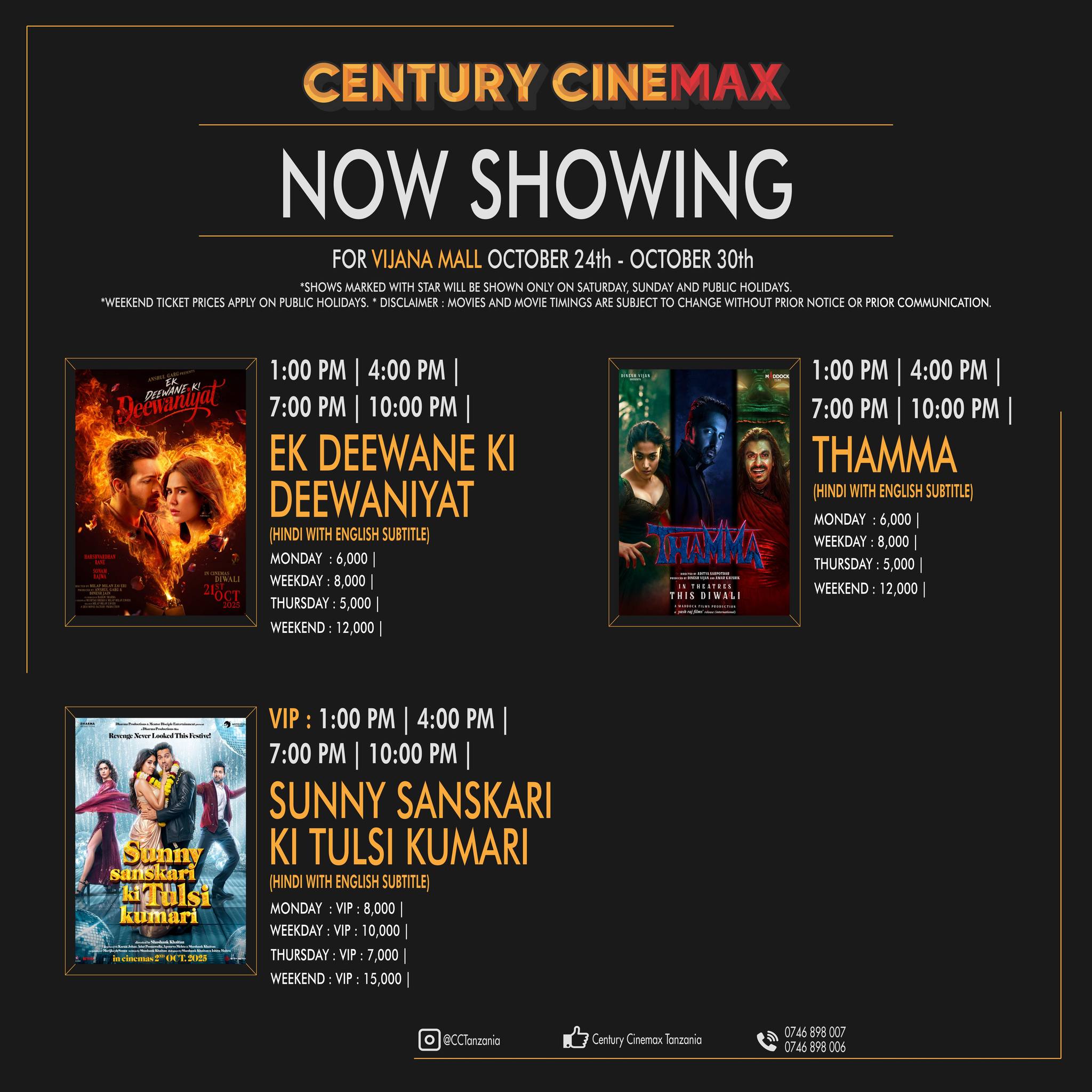 The Current Weekly Movie Schedule for Century Cinemax, Vijana Mall, Dar es Salaam